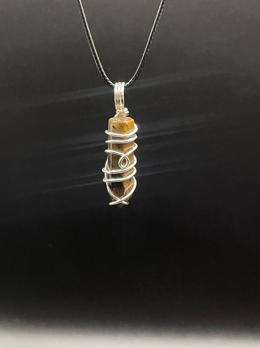 Elevate your Aura with a One of a Kind Mini Tower Tigers Eye Wire Wrapped Crystal Necklace