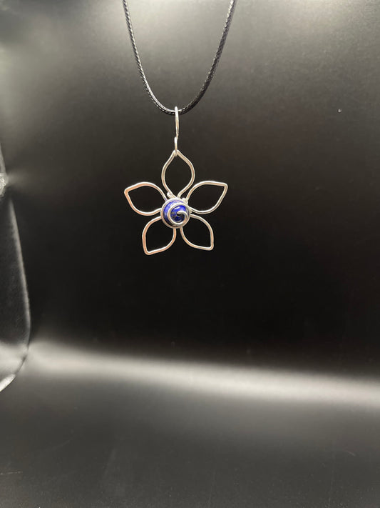 Eternal Bloom: Copper Wrapped Lapis Lazuli Flower Necklace