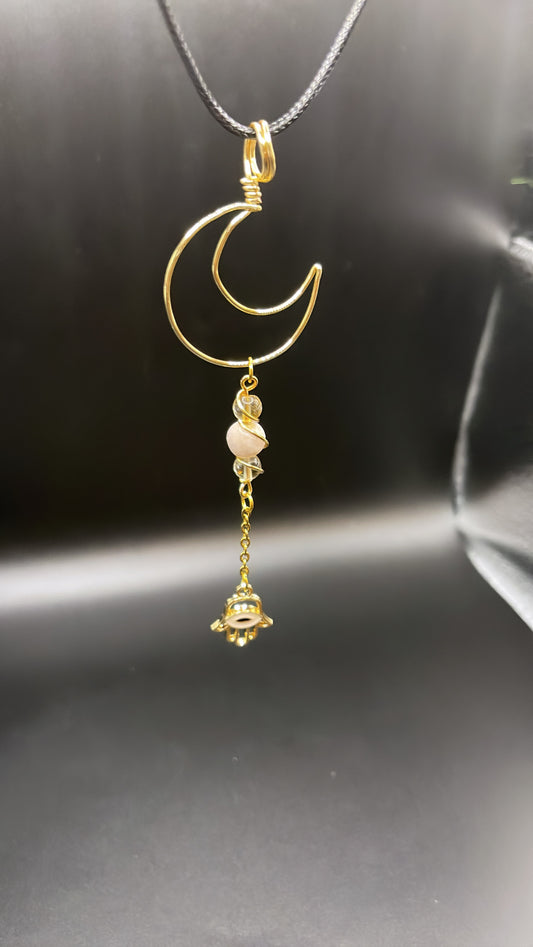 ✨Lunar Elegance: Gold Wire-Wrapped Moon Necklace; Flower Agate and Citrine ✨