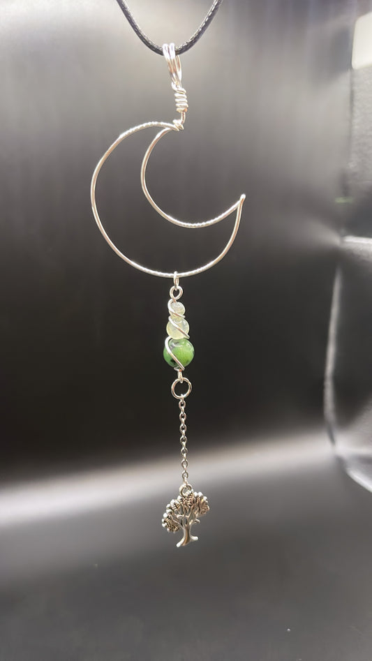 ✨Lunar Elegance: Silver Wire-Wrapped Moon Necklace with Tree of life; Labradorite, Prehnite and Ruby Zoisite✨