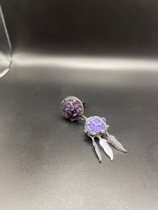 ✨ Serenity in Motion: Amethyst Car AC Vent Clip with Dream Catcher Cage ✨