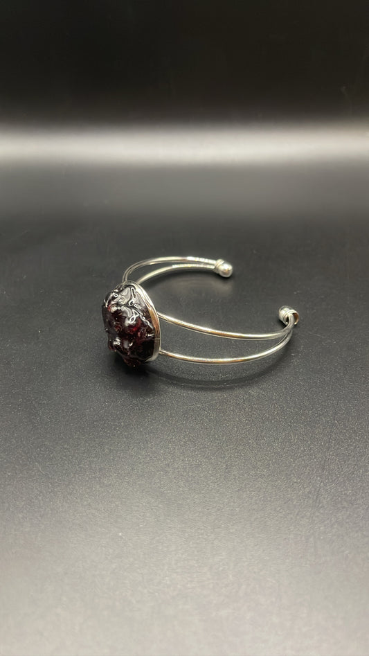 ✨ Passionate Radiance: Adjustable Silver Cuff Bracelet with Garnet ✨
