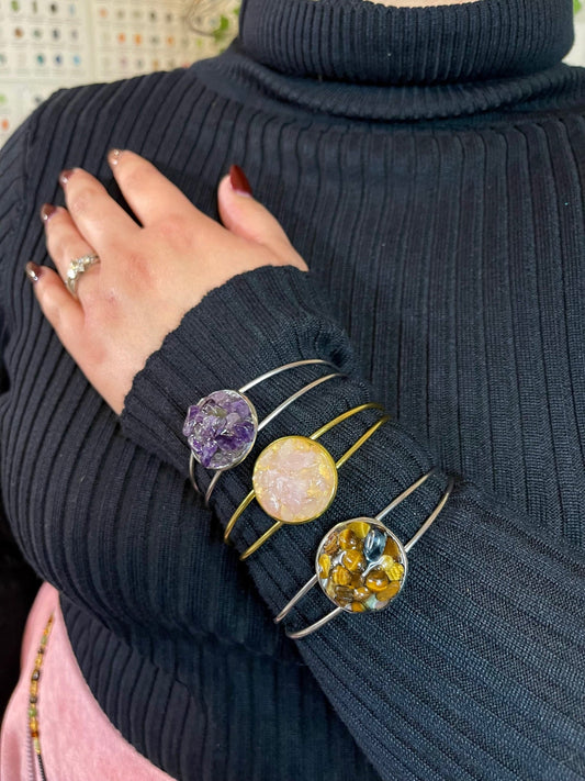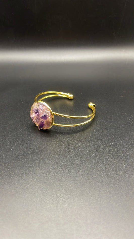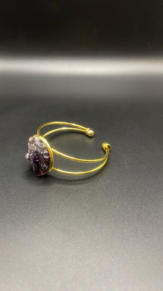 ✨ Ethereal Glow: Adjustable Gold Cuff Bracelet with Amethyst Chips ✨