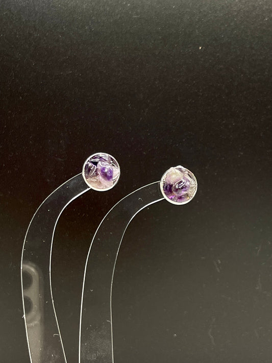 Radiant Simplicity: Silver Amethyst Crystal Chip Stud Earrings for Effortless Elegance
