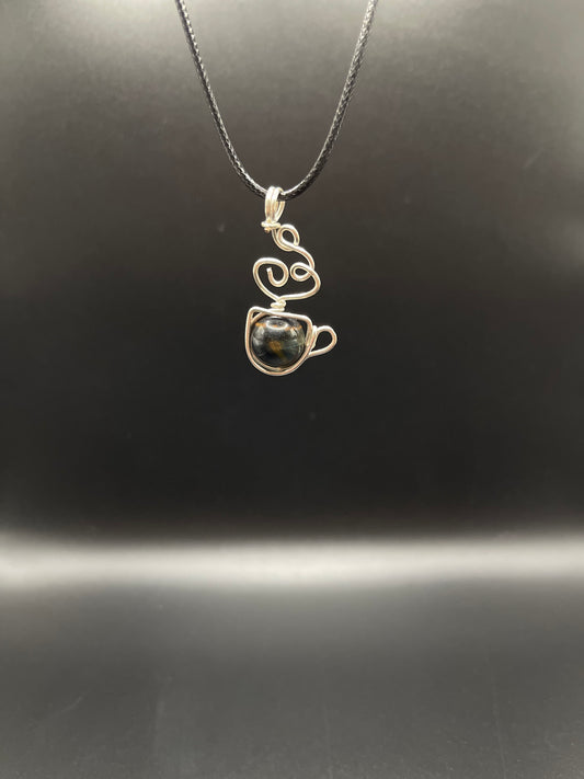 ✨ Soulful Infusions: Tiger’s Eye Silver Copper Wire-Wrapped Tea Pot with Adjustable Rope Necklace ✨