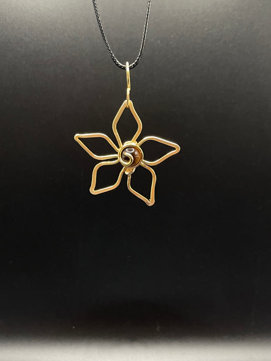 Eternal Bloom: Copper Wrapped Tigers Eye Flower Necklace