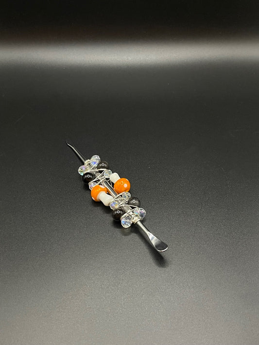 ✨ Dabbing Delight: Silver Sheen Obsidian Crystal Dab Tool with Orange Mushroom Accents ✨