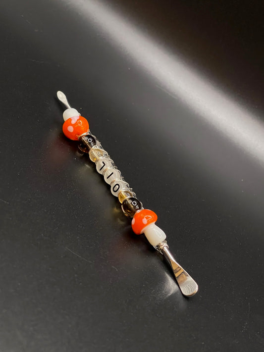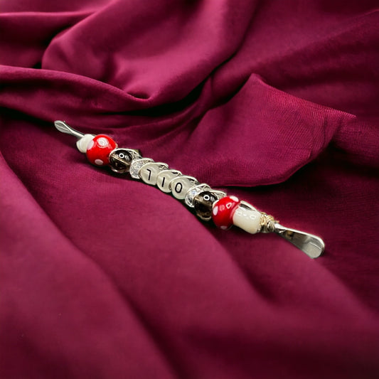 ✨ Luminous Dabbing Magic: Silver Sheen Obsidian Dab Tool with Red Mushrooms and Glow-in-the-Dark Letters ✨