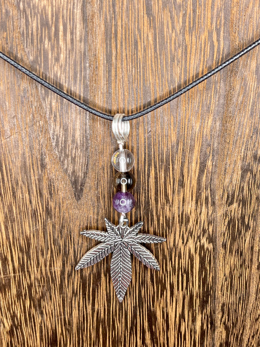 ✨ Nature’s Harmony: Clear Quartz, Smoky Quartz and Amethyst Crystal Necklace with Marijuana Leaf Charm ✨