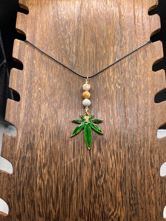 ✨ Nature’s Harmony: Coral Jade Crystal Necklace with Marijuana Leaf Charm ✨