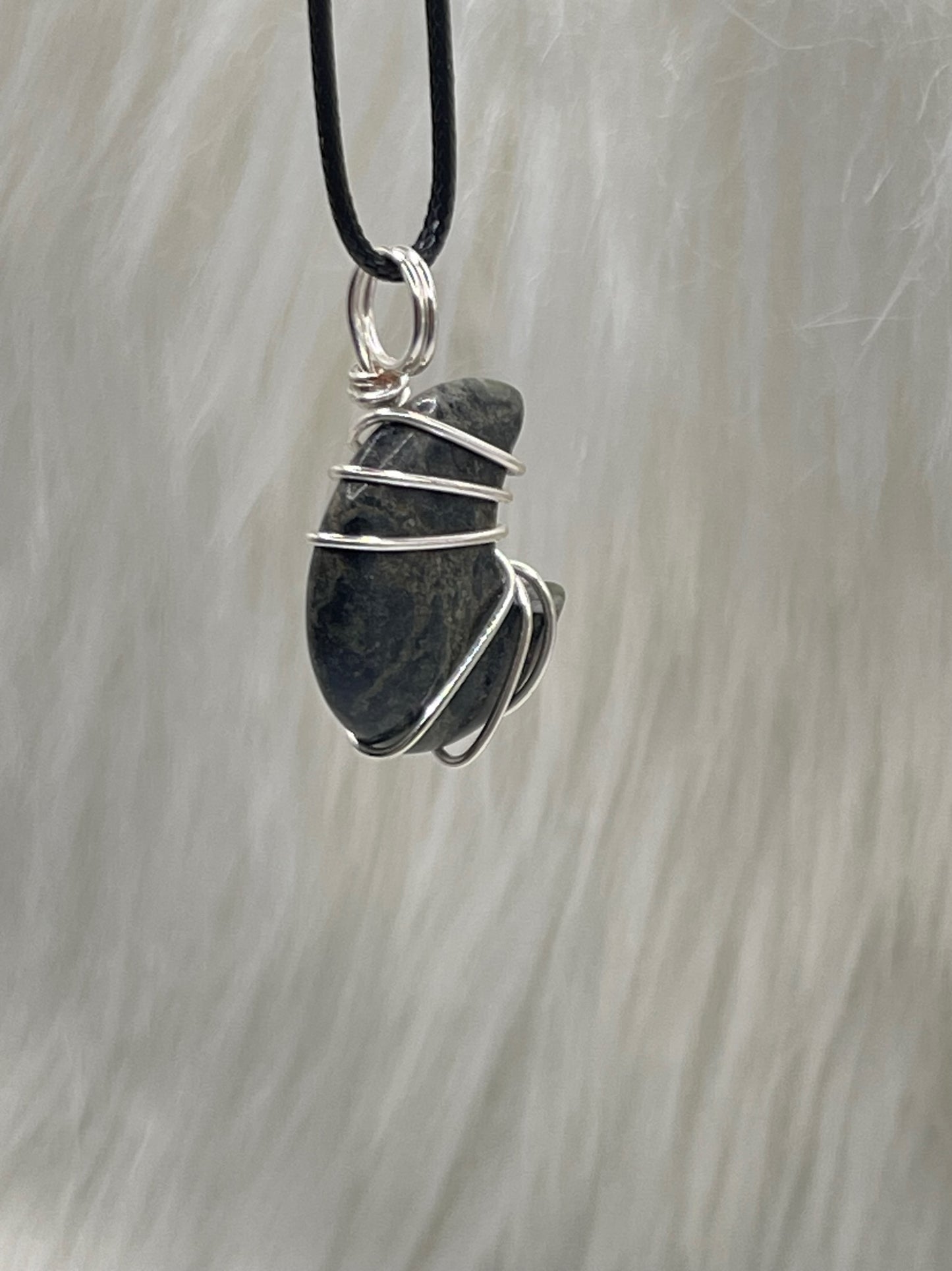 Illuminate your style with our Celestial Elegance: Kambaba Jasper Moon Necklace, a mesmerizing piece that fuses the earthly beauty of Kambaba Jasper with the celestial charm of a crescent moon. This handcrafted necklace features tarnish resistant silver-plated copper wire and is suspended from an adjustable rope necklace (20-22 inches). Embrace the grounding energy of Kambaba Jasper while adorning yourself with the grace of lunar-inspired jewelry.